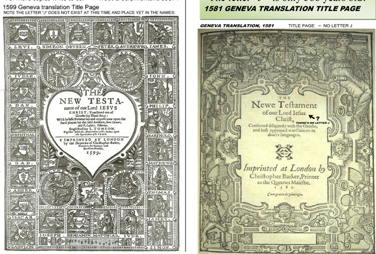 Here is a copy of the 1581 and 1599 'Geneva' translations of the New Testament. You can see there is no letter 'J'. Five hundred years ago, no one had ever heard of the name 'Jesus'. When researching the letter 'J', we find that it is a little over 500 years old.